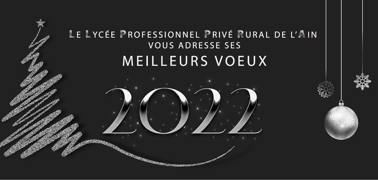 Catherine Blanc, Présidente, et le Conseil d’Administration,Christèle Katgely, Cheffe d’Etablissement et Directrice du CFA, David Gourdon, Directeur Adjoint du site de Villars-les-Dombes et les personnels du Lycée Professionnel Privé Rural de l'Ain vous présentent leurs meilleurs vœux pour cette nouvelle année 2022.